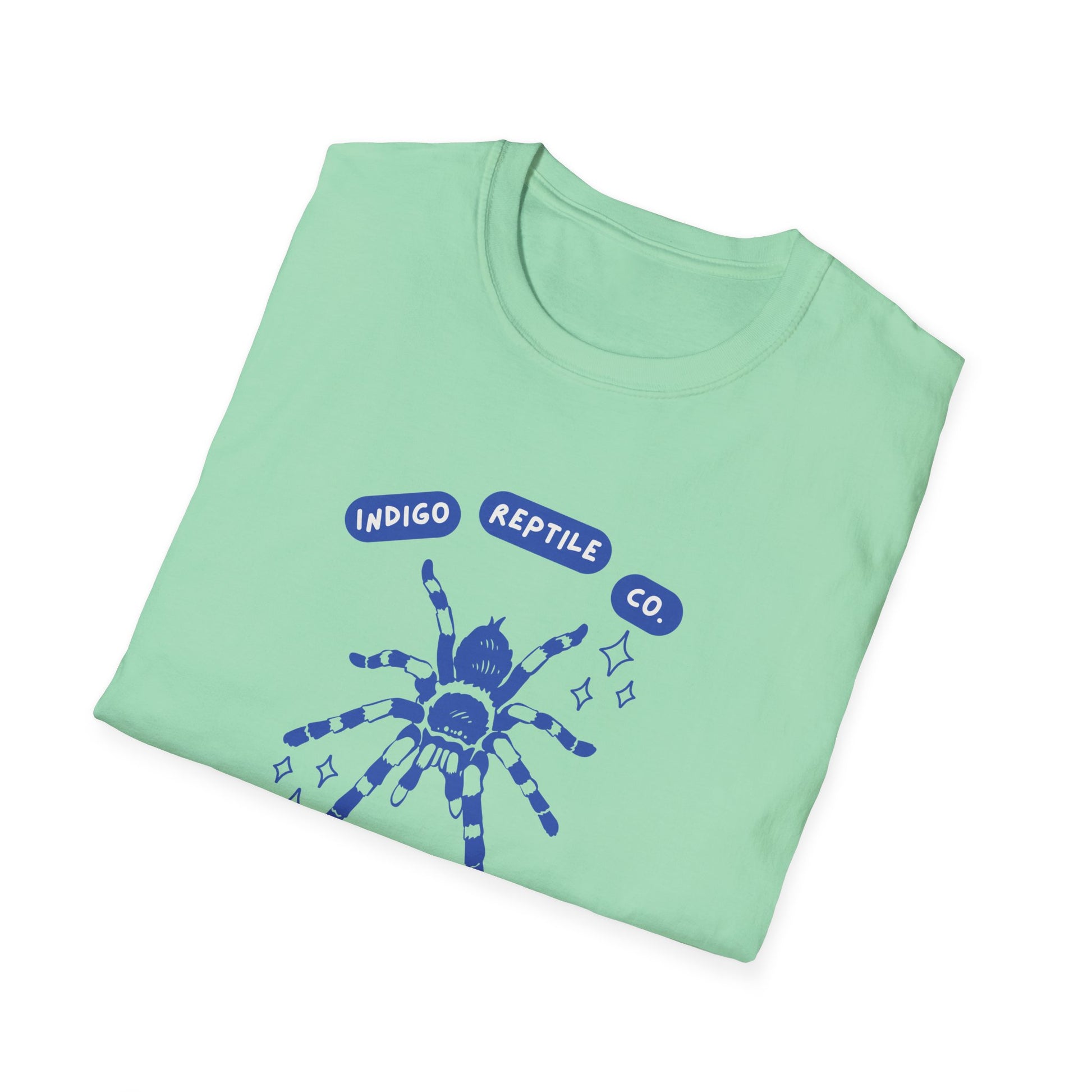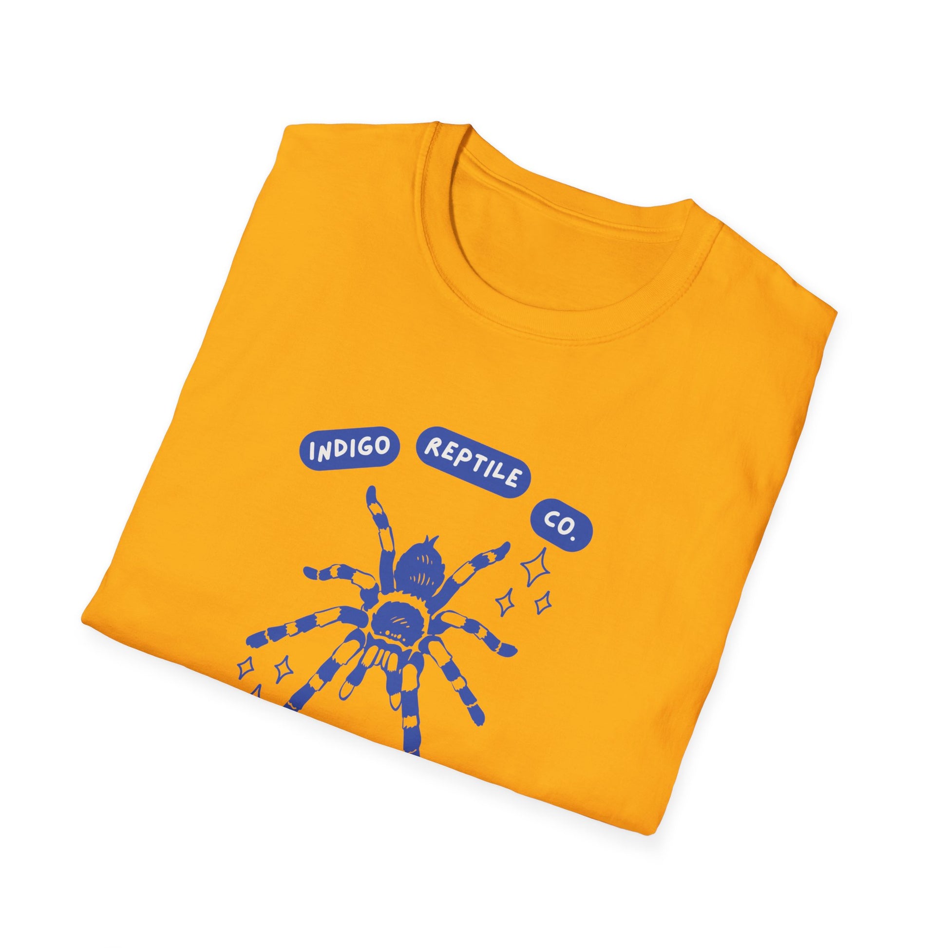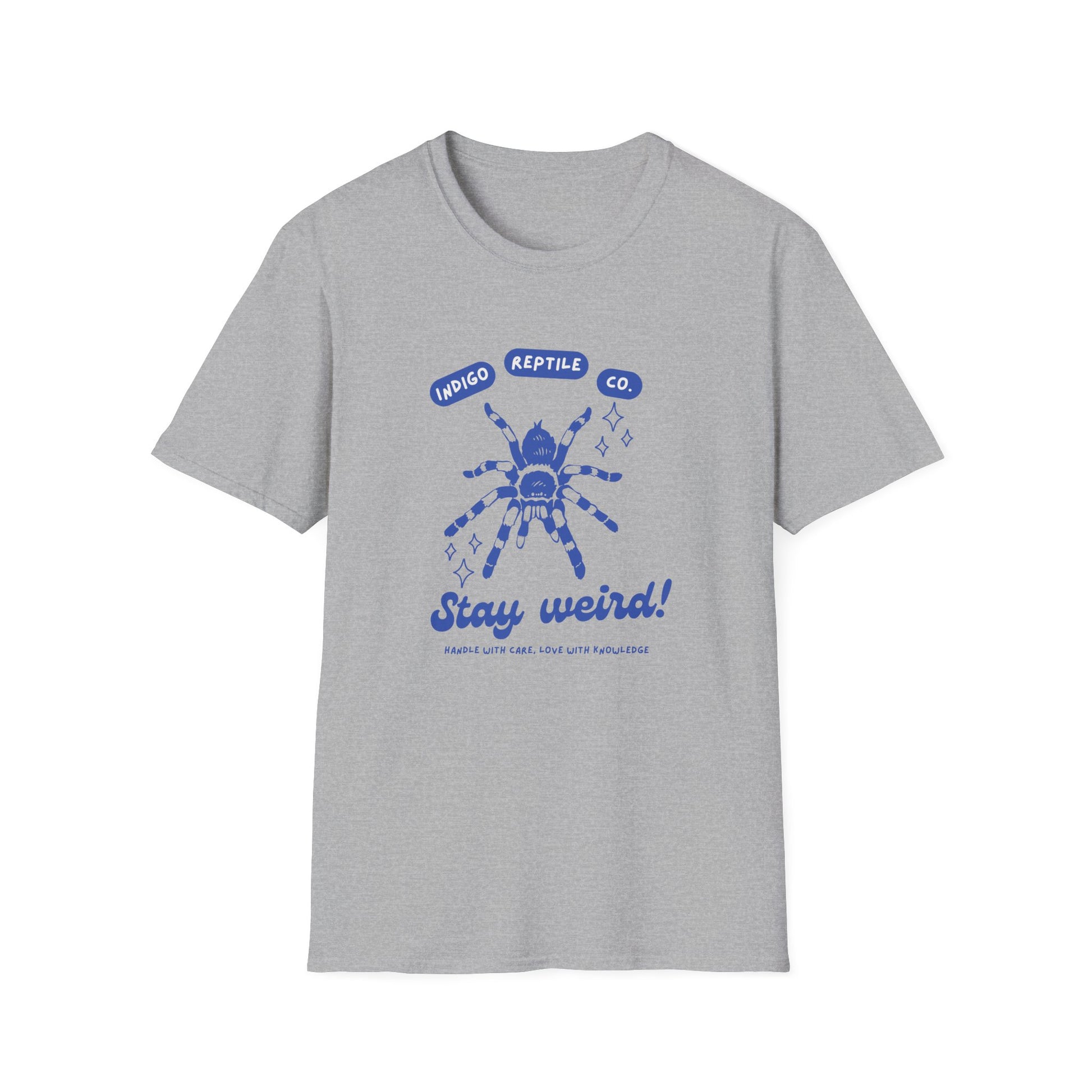Stay weird with the Indigo Reptile Co. unisex softstyle T-shirt featuring a purple writing and a tarantula design. This tee gives off a quirky, eccentric vibe perfect for those who love unique and standout clothing. Ideal for adults looking to express their individuality and make a statement. Relevant for casual wear, parties, and other fun occasions.